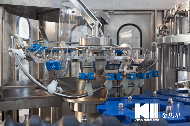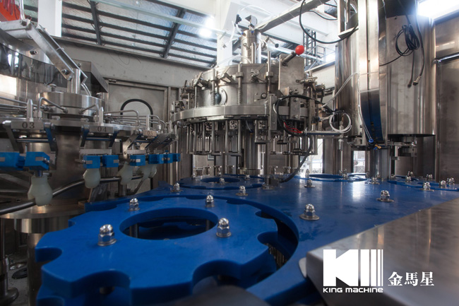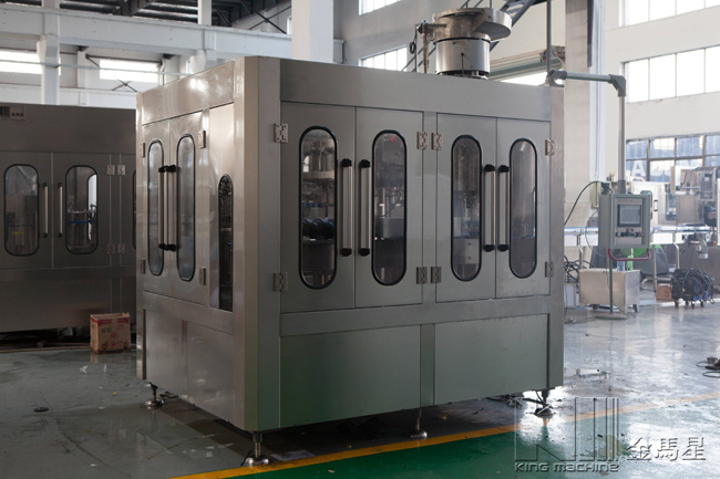 玻璃瓶灌裝機集沖洗、灌裝、旋蓋于一體,全過程自動化運行,主要適用玻璃瓶礦泉水、玻璃瓶果汁、各種玻璃瓶酒類及各種玻璃瓶調味品等不含氣產(chǎn)品的沖瓶、灌裝、封口連續(xù)。本機大部分電器系統(tǒng)零件均采用國外較好產(chǎn)品,所有與液料接觸的地方均采用優(yōu)質的不銹鋼材料制作,主關鍵部件采用數(shù)控機床精密加工, 整機光電檢測各部件的運行狀況,無瓶不灌裝,無瓶不送蓋,自動化程度高,操作簡易,具有耐磨、穩(wěn)定、故障率低等特點,產(chǎn)品質量處于行業(yè)前列,是新老飲料投資者的理想選擇。
