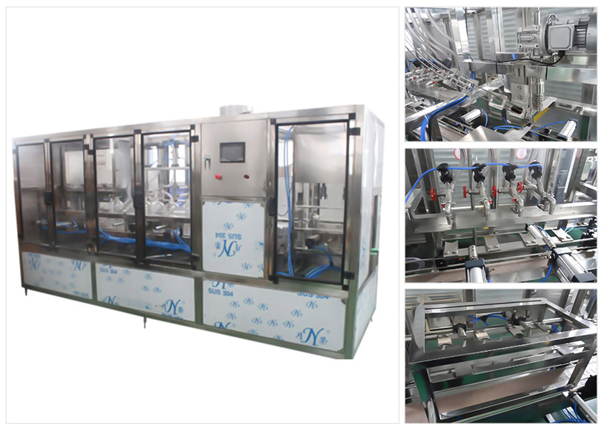 本設(shè)備適用于3L/5L/7L/10L的瓶子,進(jìn)行沖洗灌裝和壓蓋。結(jié)構(gòu)簡單,容易操作。