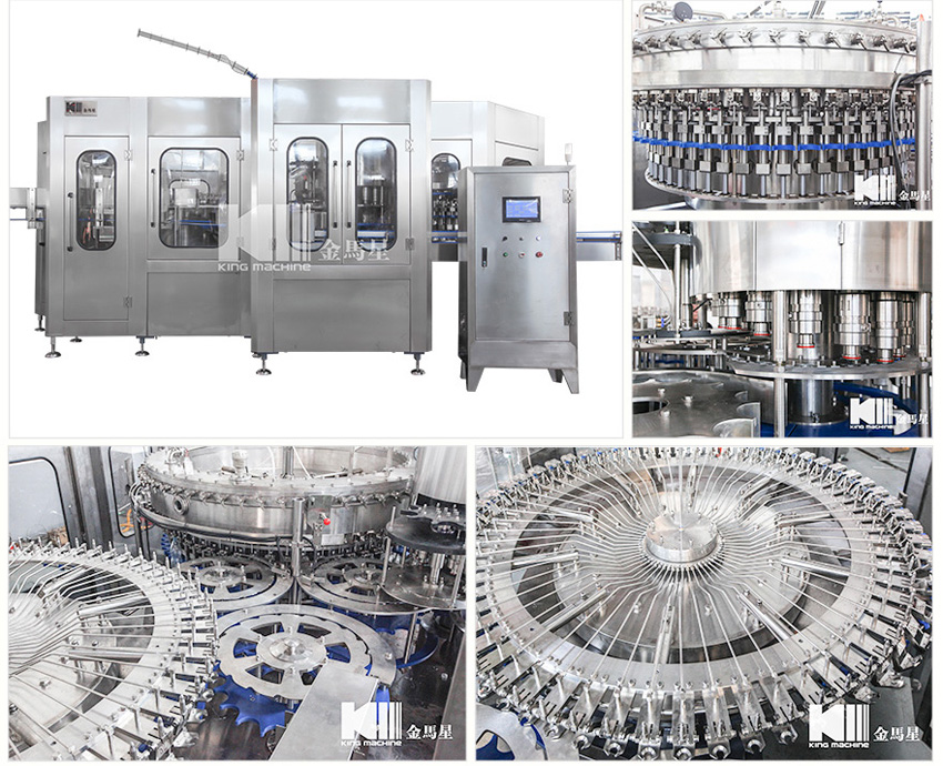 此設(shè)備主要應(yīng)用于灌裝飲料,包含沖瓶、灌裝和旋蓋三大功能。