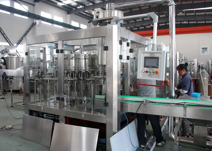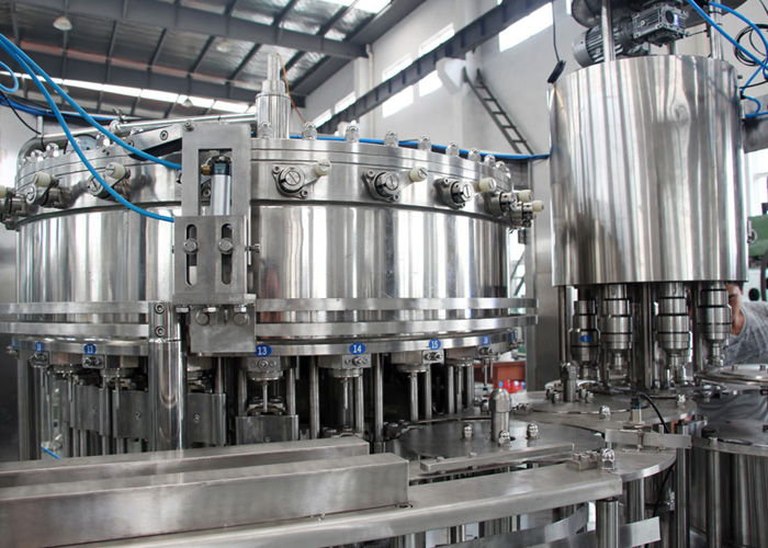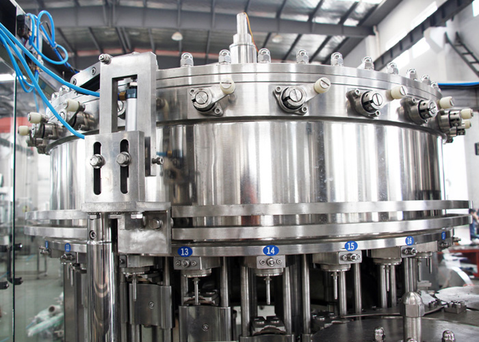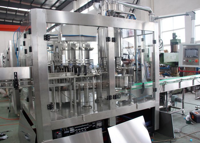飲用水灌裝機集沖洗、灌裝、旋蓋于一體,全過程自動化運行,主要適用礦泉水、純凈水等不含氣飲料的沖瓶、灌裝、封口連續(xù)作業(yè)。本機大部分電器系統(tǒng)零件均采用國外較好產(chǎn)品,所有與液料接觸的地方均采用優(yōu)質(zhì)的不銹鋼材料制作,主關鍵部件采用數(shù)控機床精密加工, 整機光電檢測各部件的運行狀況,無瓶不灌裝,無瓶不送蓋,自動化程度高,操作簡易,具有耐磨、穩(wěn)定、故障率低等特點,產(chǎn)品質(zhì)量處于行業(yè)前列,是新老飲料投資者的理想選擇。