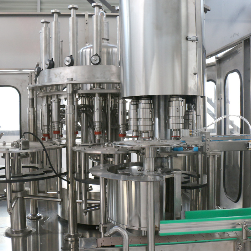 飲用水灌裝機(jī)集沖洗、灌裝、旋蓋于一體,全過程自動化運(yùn)行,主要適用礦泉水、純凈水等不含氣飲料的沖瓶、灌裝、封口連續(xù)作業(yè)。本機(jī)大部分電器系統(tǒng)零件均采用國外較好產(chǎn)品,所有與液料接觸的地方均采用優(yōu)質(zhì)的不銹鋼材料制作,主關(guān)鍵部件采用數(shù)控機(jī)床精密加工, 整機(jī)光電檢測各部件的運(yùn)行狀況,無瓶不灌裝,無瓶不送蓋,自動化程度高,操作簡易,具有耐磨、穩(wěn)定、故障率低等特點(diǎn),產(chǎn)品質(zhì)量處于行業(yè)前列,是新老飲料投資者的理想選擇。