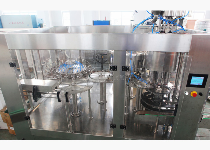 果汁灌裝機(jī)同時(shí)適用于果汁、茶飲料、功能飲料及果味奶飲料的灌裝。在溫度控制器的幫助下,該機(jī)器能夠進(jìn)行80-95度高溫?zé)峁嘌b。本設(shè)備采用瓶頸懸掛技術(shù),適用于各種瓶型,跟換瓶型只需調(diào)節(jié)傳送鏈的高度及出瓶玻璃即可,方便快捷。全機(jī)PLC控制變頻調(diào)速,自動(dòng)化程度高,自動(dòng)控制進(jìn)液,液位控制準(zhǔn)確,無滴漏。與物料接觸部分均為食品級(jí)304優(yōu)質(zhì)不銹鋼。是飲料廠家的理想選擇。