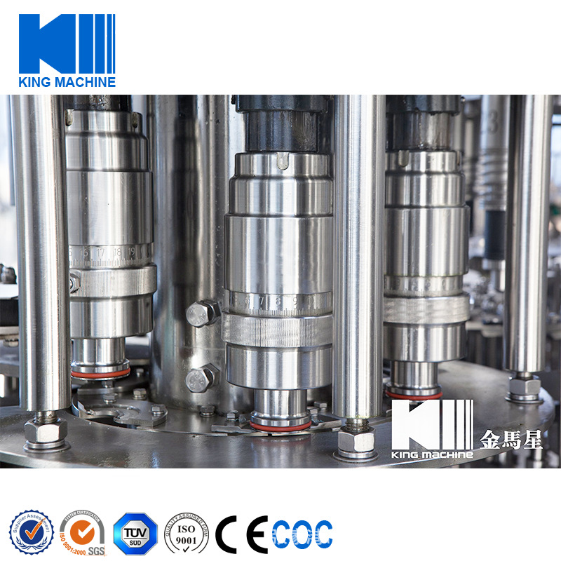 飲用水灌裝機(jī)集沖洗、灌裝、旋蓋于一體,全過程自動(dòng)化運(yùn)行,主要適用礦泉水、純凈水等不含氣飲料的沖瓶、灌裝、封口連續(xù)作業(yè)。本機(jī)大部分電器系統(tǒng)零件均采用國外較好產(chǎn)品,所有與液料接觸的地方均采用優(yōu)質(zhì)的不銹鋼材料制作,主關(guān)鍵部件采用數(shù)控機(jī)床精密加工, 整機(jī)光電檢測(cè)各部件的運(yùn)行狀況,無瓶不灌裝,無瓶不送蓋,自動(dòng)化程度高,操作簡易,具有耐磨、穩(wěn)定、故障率低等特點(diǎn),產(chǎn)品質(zhì)量處于行業(yè)前列,是新老飲料投資者的理想選擇。