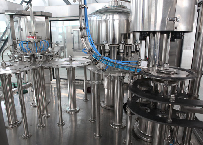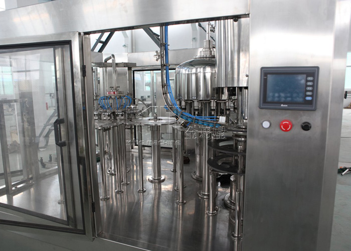飲用水灌裝機(jī)集沖洗、灌裝、旋蓋于一體,全過程自動(dòng)化運(yùn)行,主要適用礦泉水、純凈水等不含氣飲料的沖瓶、灌裝、封口連續(xù)作業(yè)。本機(jī)大部分電器系統(tǒng)零件均采用國(guó)外較好產(chǎn)品,所有與液料接觸的地方均采用優(yōu)質(zhì)的不銹鋼材料制作,主關(guān)鍵部件采用數(shù)控機(jī)床精密加工, 整機(jī)光電檢測(cè)各部件的運(yùn)行狀況,無瓶不灌裝,無瓶不送蓋,自動(dòng)化程度高,操作簡(jiǎn)易,具有耐磨、穩(wěn)定、故障率低等特點(diǎn),產(chǎn)品質(zhì)量處于行業(yè)前列,是新老飲料投資者的理想選擇。
