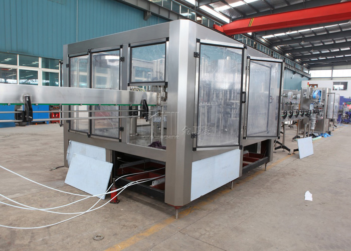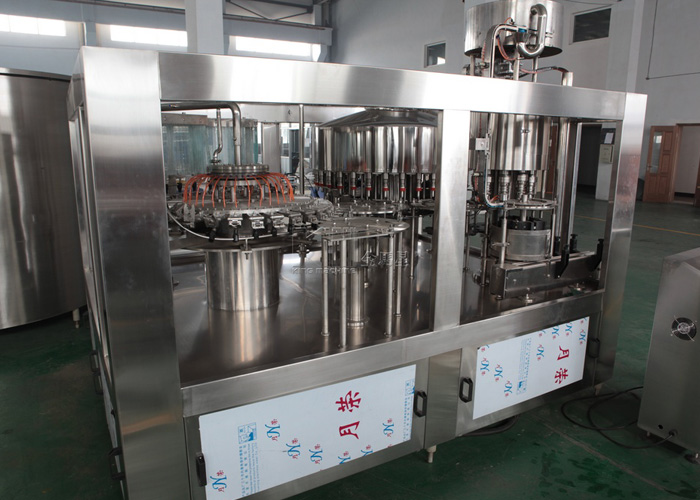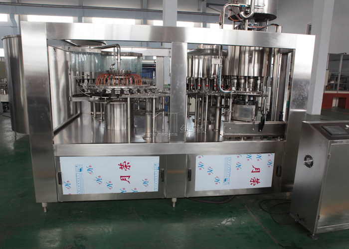 飲用水灌裝機集沖洗、灌裝、旋蓋于一體,全過程自動化運行,主要適用礦泉水、純凈水等不含氣飲料的沖瓶、灌裝、封口連續(xù)作業(yè)。本機大部分電器系統(tǒng)零件均采用國外較好產(chǎn)品,所有與液料接觸的地方均采用優(yōu)質(zhì)的不銹鋼材料制作,主關(guān)鍵部件采用數(shù)控機床精密加工, 整機光電檢測各部件的運行狀況,無瓶不灌裝,無瓶不送蓋,自動化程度高,操作簡易,具有耐磨、穩(wěn)定、故障率低等特點,產(chǎn)品質(zhì)量處于行業(yè)前列,是新老飲料投資者的理想選擇。