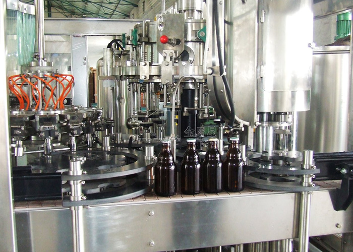飲用水灌裝機(jī)集沖洗、灌裝、旋蓋于一體,全過程自動(dòng)化運(yùn)行,主要適用礦泉水、純凈水等不含氣飲料的沖瓶、灌裝、封口連續(xù)作業(yè)。本機(jī)大部分電器系統(tǒng)零件均采用國(guó)外較好產(chǎn)品,所有與液料接觸的地方均采用優(yōu)質(zhì)的不銹鋼材料制作,主關(guān)鍵部件采用數(shù)控機(jī)床精密加工, 整機(jī)光電檢測(cè)各部件的運(yùn)行狀況,無瓶不灌裝,無瓶不送蓋,自動(dòng)化程度高,操作簡(jiǎn)易,具有耐磨、穩(wěn)定、故障率低等特點(diǎn),產(chǎn)品質(zhì)量處于行業(yè)前列,是新老飲料投資者的理想選擇。