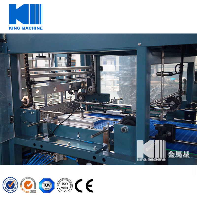 此設(shè)備專用于瓶裝水的高速包裝。當(dāng)瓶子到位之后,此設(shè)備自動(dòng)環(huán)繞包裝,大大提高了工作效率。PLC控制,自動(dòng)運(yùn)行。恒溫收縮,表面涂有特氟龍,穩(wěn)定密封。觸摸屏帶來易操作的保證。適應(yīng)各種瓶型和無托盤的包裝。