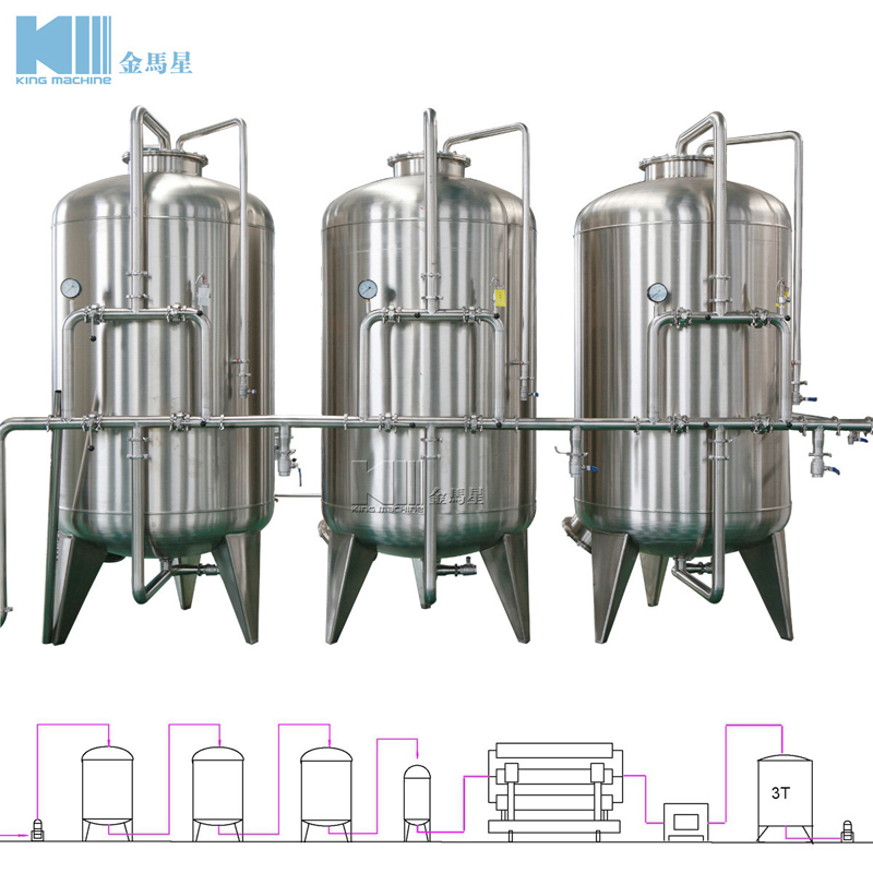 我們采用不同設(shè)備來生產(chǎn)純凈水和礦泉水。主要設(shè)備有石英砂過濾器、活性炭過濾器、鈉離子交換器、精密過濾器、反滲透過濾器、紫外線消毒機、臭氧發(fā)生器、儲水罐等。產(chǎn)量是0.5-50 ton/hour。該設(shè)備能夠有效去除懸浮物、有機物、重金屬離子離子、氧化物、膠體等,有效軟化水,使得產(chǎn)出的水能夠滿足飲用水的標準。