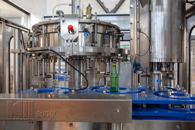此設(shè)備主要應(yīng)用于灌裝飲料,包含沖瓶、灌裝和旋蓋三大功能。